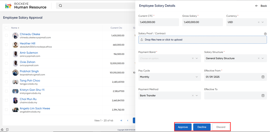 - Effective From: The effective from the field indicates the starting date from which a salary change or adjustment becomes valid. It is the date on which the new salary will be implemented for the employee. This field ensures that the salary approval process takes into account the specific effective date to ensure accuracy and timeliness.