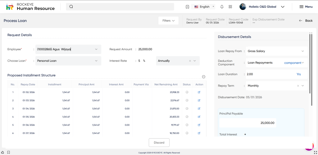 The process loan in HRMS typically include the following: