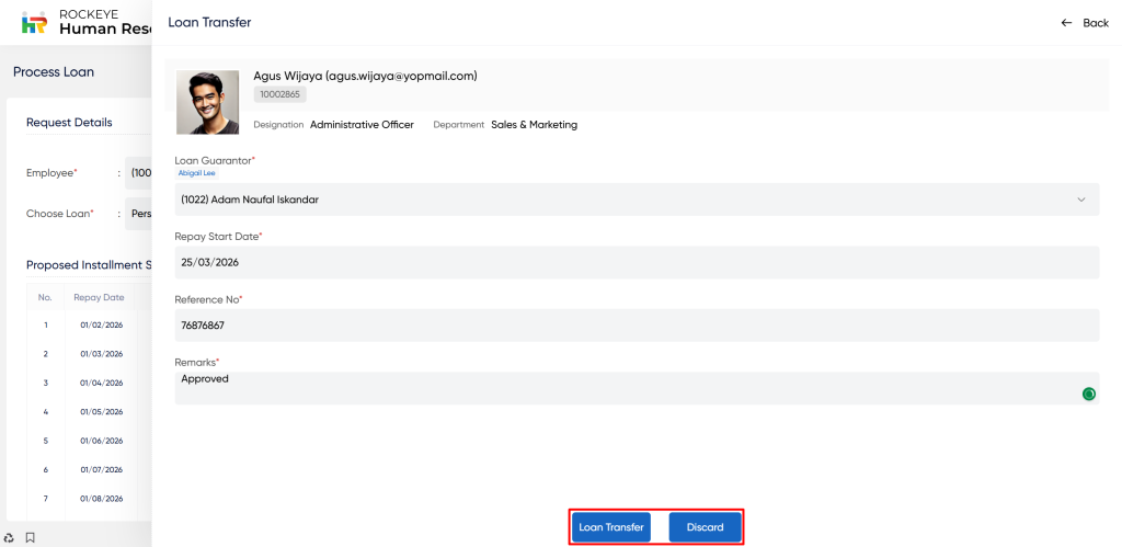 - Remarks: This field allows for adding any additional comments or notes related to the loan transfer. It provides space to include relevant information or instructions regarding the transfer process or any specific details related to the loan.