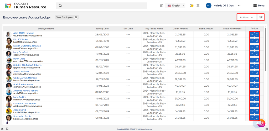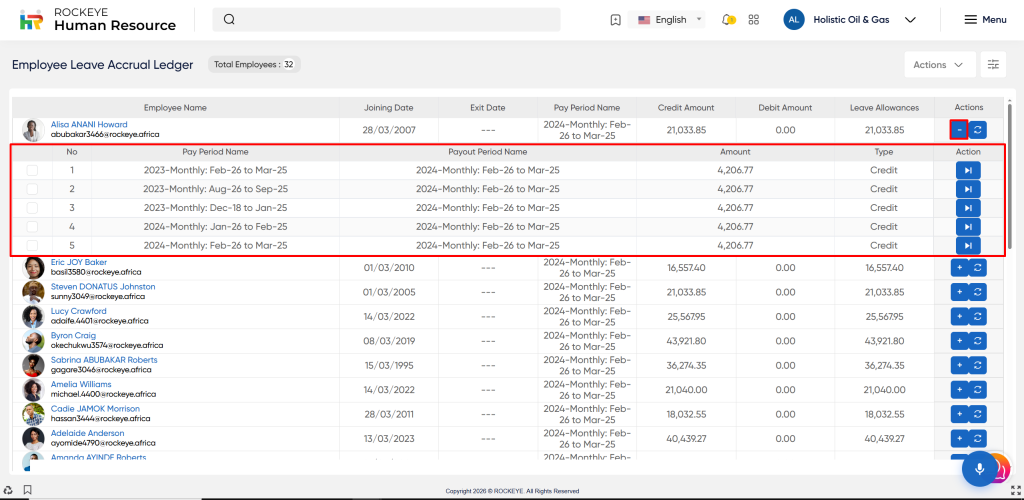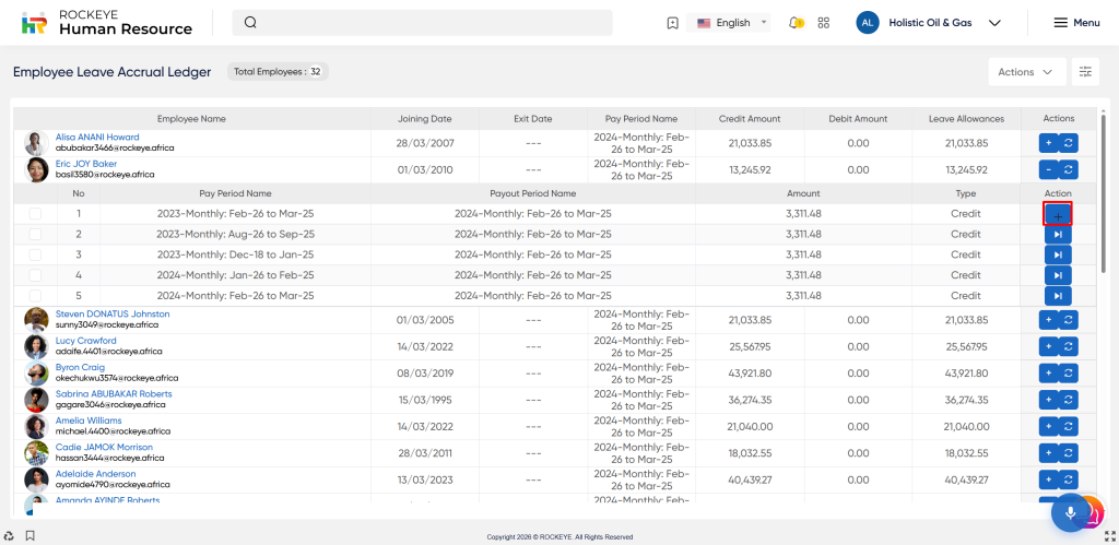 The Employee Leave Accrual Ledger allows users to view the ledger record based on the filtration of the pay period.