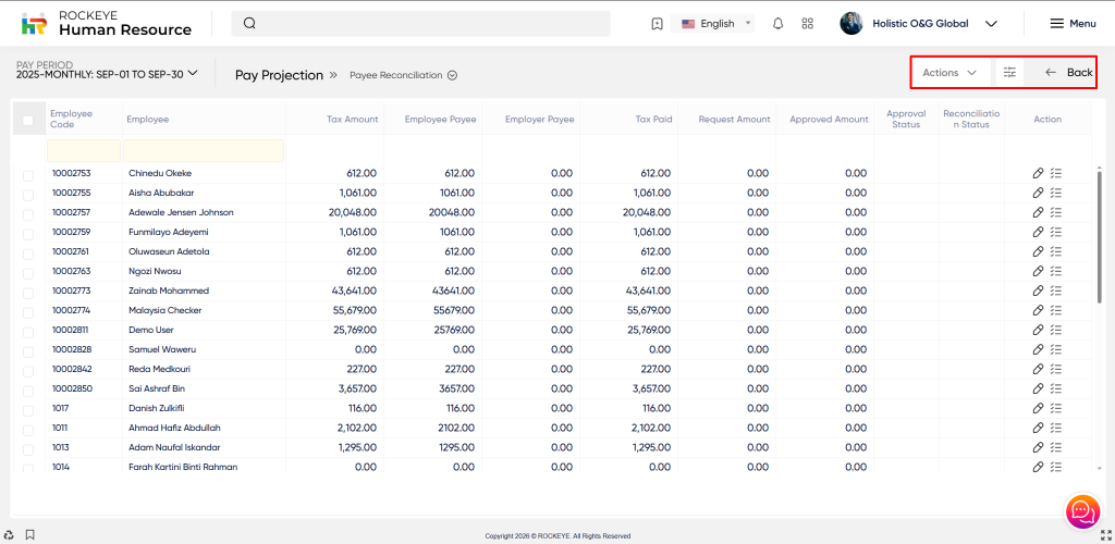 - After selecting a record, the user clicks on the Pay Projection button The user will able pop-up message “Payee data is reconciled successfully”