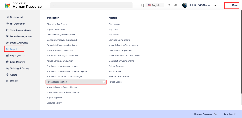 - Click on the Payee Reconciliation section which is located in the Transactions under Payroll. After clicking on this link you can navigate Payee Reconciliation record Listing.