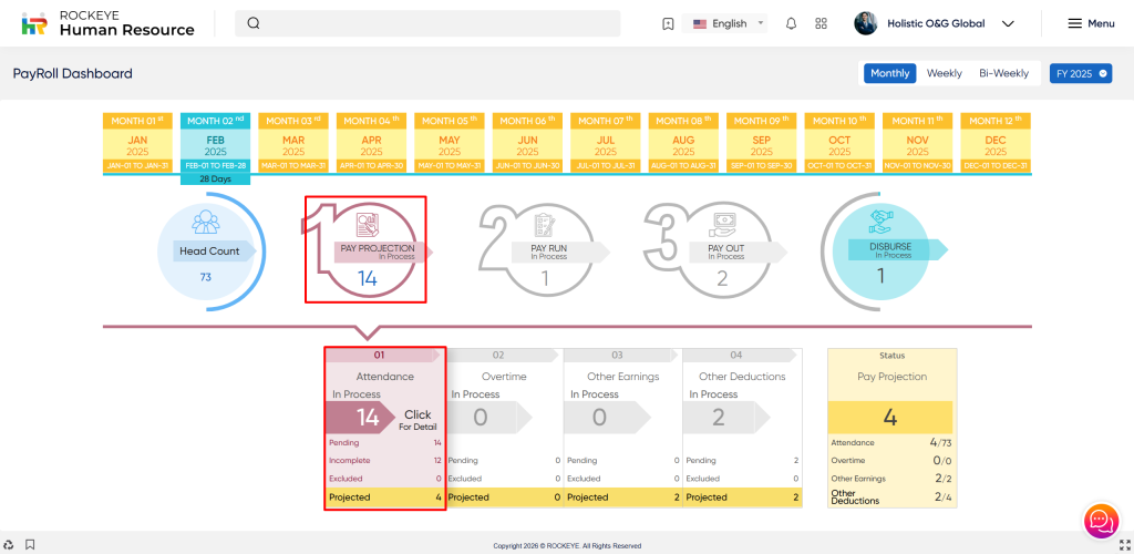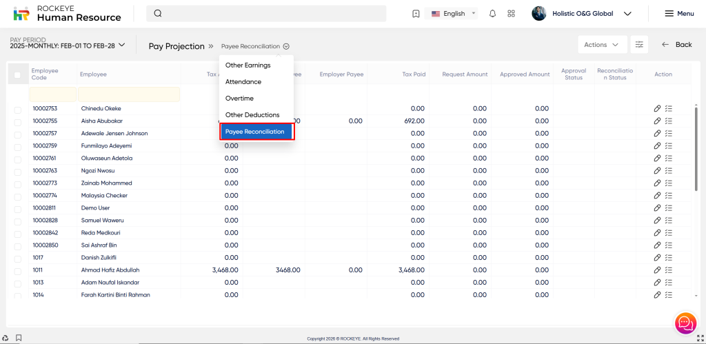 - Click on the Pay Projection section which is located in the Transactions under Payroll. After clicking on this link you can navigate to Pay Projection. Users can view the payee reconciliation section.