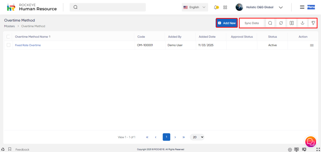 - Status*: This indicates the current status of the Overtime Method, such as active, inactive and pending.