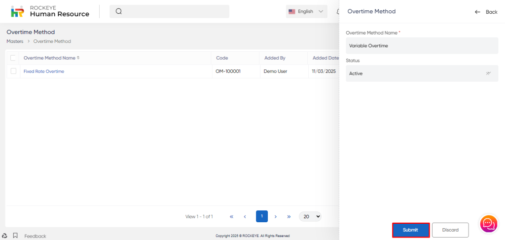 These Overtime Method records will get saved if No approval flow is defined and if any approval flow is defined it will go for approval to the respective approving authority.