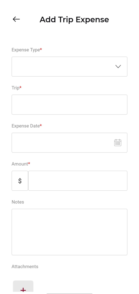 Add Trip Expense Form: