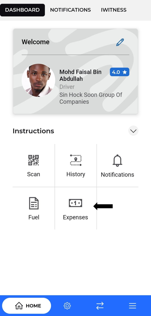 • Trip Expenses Section: Central area to manage or view expenses.