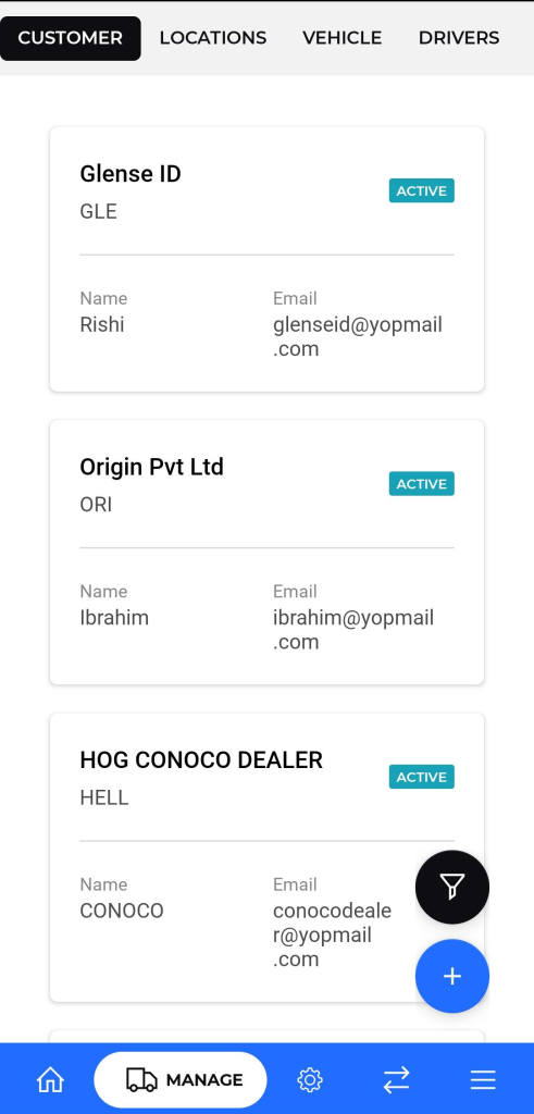 - From the customer list screen, tap the “+” floating action button located at the bottom-right corner.