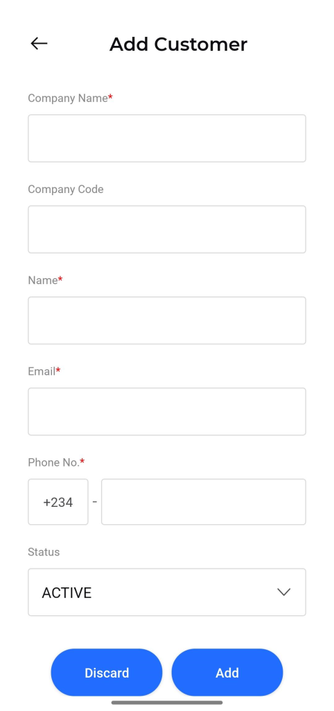 - Once all required fields are completed, tap the Add button to save the new customer.