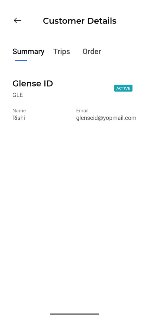 Tapping on any customer from the list will open their detailed information screen, which is divided into three tabs: Summary, Trips, and Order.