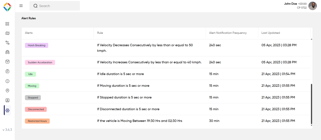 - Real Time Data Availability: The system should be able to apply the alert rules to real-time data provided by the tracking device.
