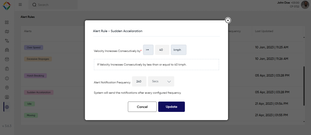 Users will get notified of the “Sudden Acceleration” alert if the vehicle violates the defined rule. To know how to set the rule, follow the below steps: