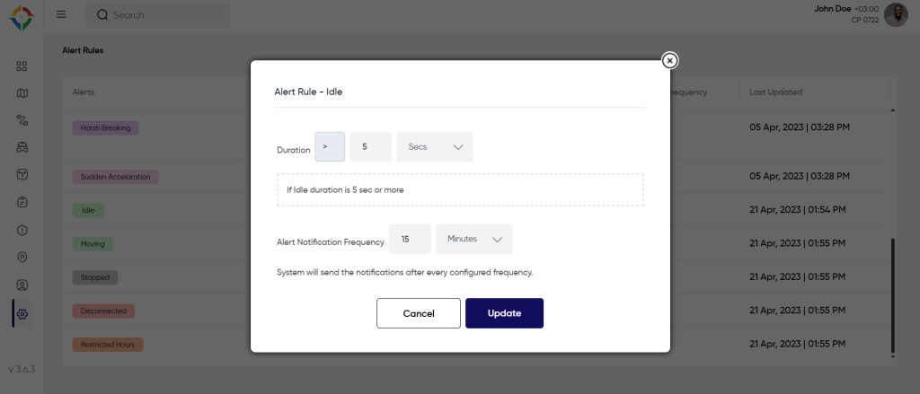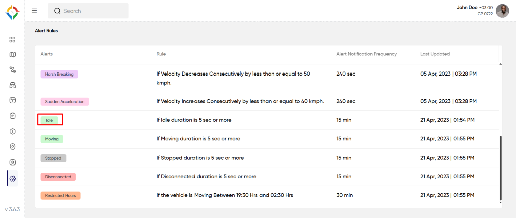 Users will get notified of the “Idle” alert if the vehicle Idle duration is 5 sec or more. To know how to set the rule, follow the below steps