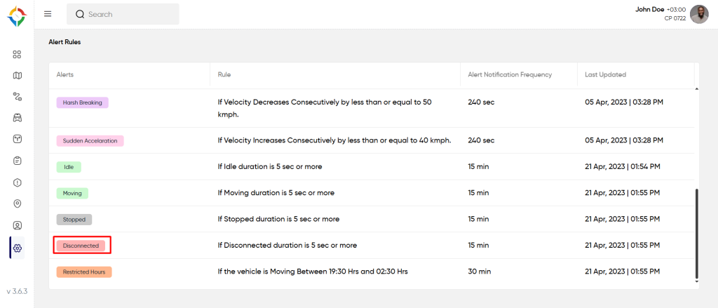 Users will get notified of the “Disconnected” alert if the vehicle disconnected duration is 5 sec or more. To know how to set the rule, follow the below steps: